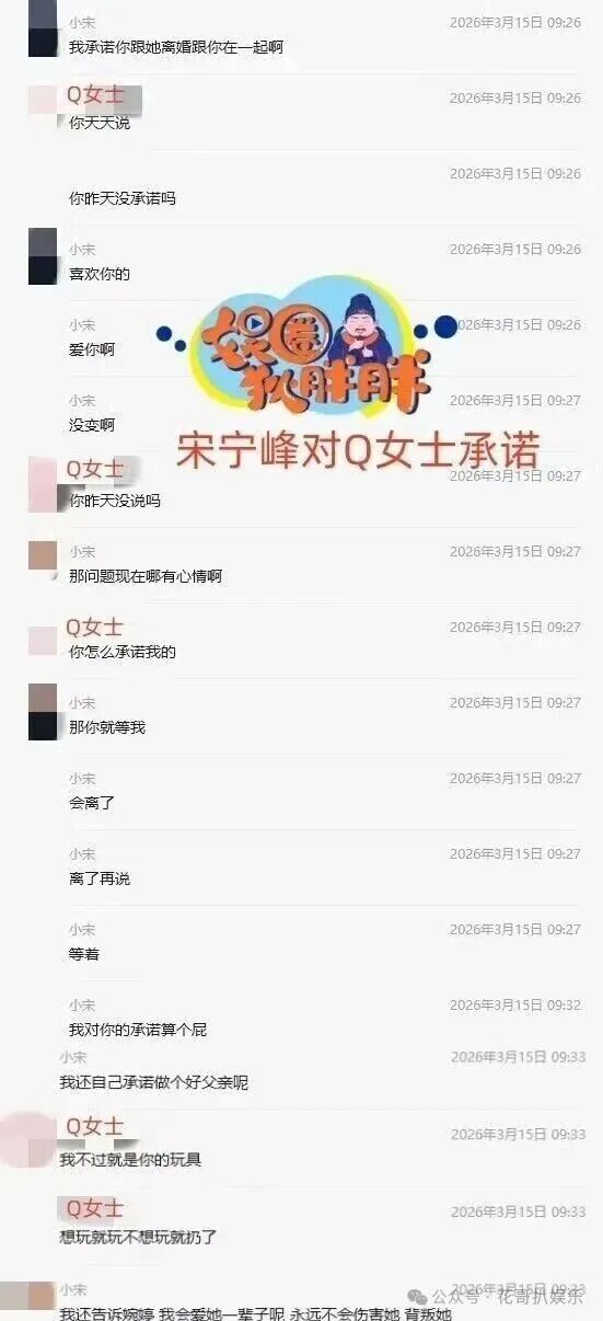 最让人齿冷的是,宋宁峰甚至倒打一耙,将所有过错推到Q女士身上,声称是对方主动勾引自己,破坏他的家庭,还厚颜无耻地要求Q女士给他补偿,放话自己之前的承诺全都是空话,还讥讽自己连做好爸爸的承诺都没做到,其他承诺更是不值一提。