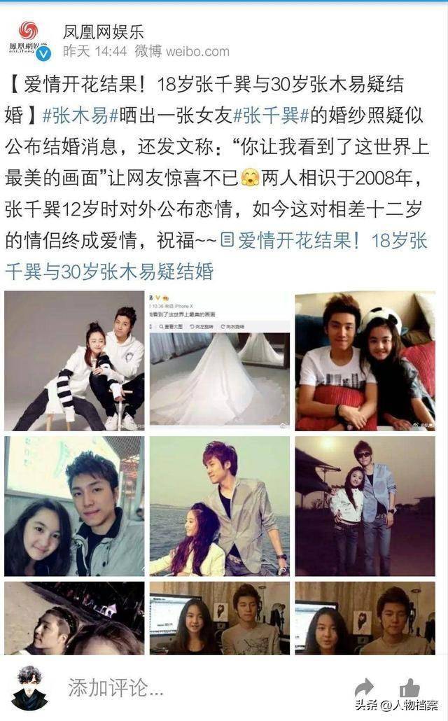 万万没想到,2018年张木易在微博上晒出一张张千巽的婚纱照,配文“你让我看到这世界上最美的画面”。