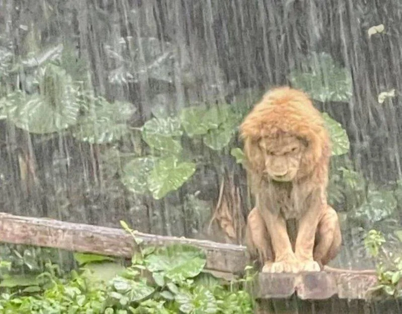 甚至有网友结合琼瑶「情深深雨蒙蒙」台词,戏称「雨下得比依萍要钱那天还大」。不过也有部分网友担心,狮子淋雨会不会感冒?牠一动不动是不是身体出了状况。