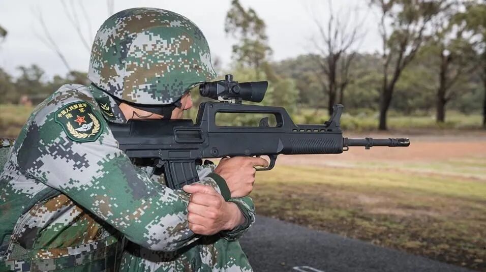▲2016年,人民解放军陆军代表队参加澳大利亚轻武器技术比赛时,将一支QJB-95-1班用机器更换高精度重型枪管,去掉两脚架作为精确射手步枪使用