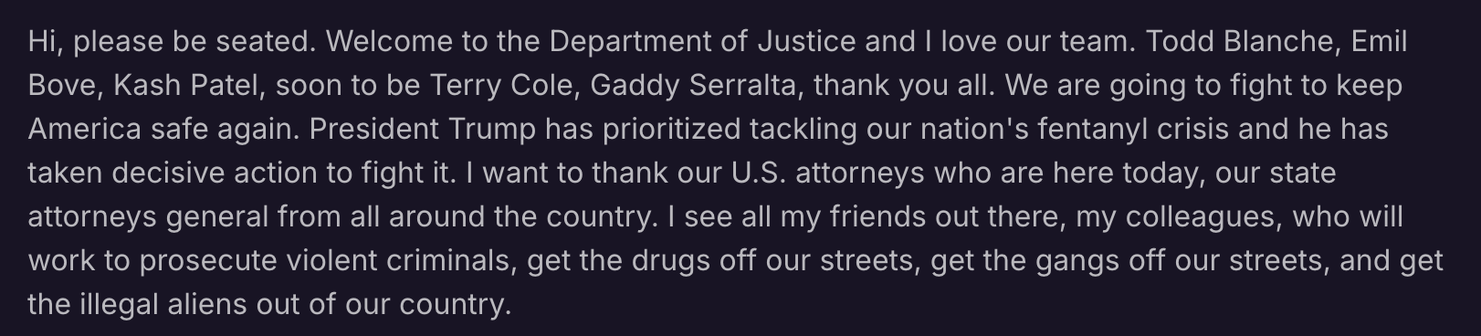 司法部在内部备忘录中明确提出,将执法重点转向:无证移民;贩毒集团(尤其是被列为恐怖组织的团体);被认为推动“分裂性DEI政策”的机构。