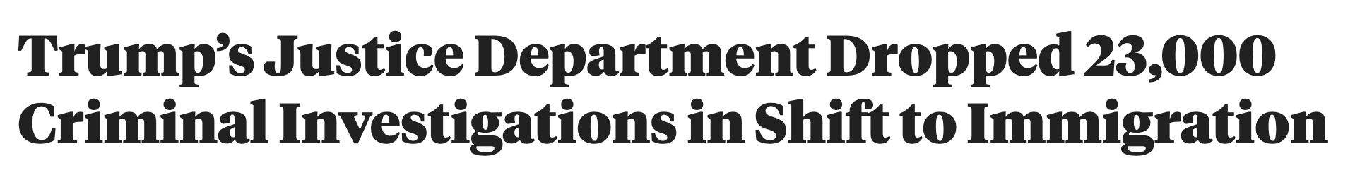 根据ProPublica对司法部数据的分析,在川普上任后的前六个月内,司法部共关闭了超过2.3万起刑事案件,且均未提起诉讼。仅在2025年2月一个月内,就有近1.1万起案件被终止,创下自2004年以来的单月最高纪录。相比之下,此前最高纪录出现在2019年,也仅约6500起。