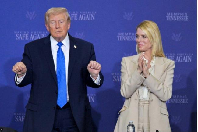 美国总统川普(左)和司法部长邦迪(右)。(美联社)
