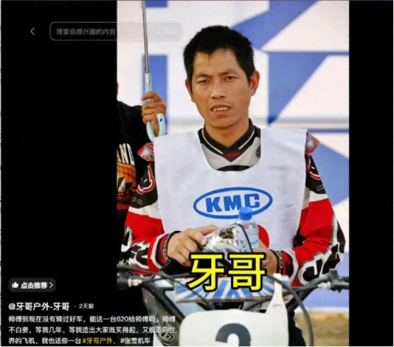 牙哥说,张雪几乎每出一款新车都会送他一辆。自己发视频时配文“没骑过好车,能送一台820给师父吗?”其实是在炫耀,是想告诉所有人——这台车是他目前认为最好的车。