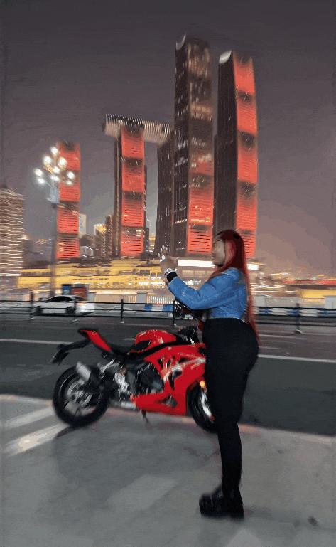 2024年,重庆南滨路兴起了“摩托车约拍”业务:帅哥美女身着机车服,在行驶过程中摆出各种炫技造型。