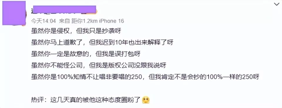 而且为了强调这一点,李荣浩还直言:“哪个250抄袭的人会抄的100%一样,这就是那首歌原曲,换了位歌手唱了一遍。”