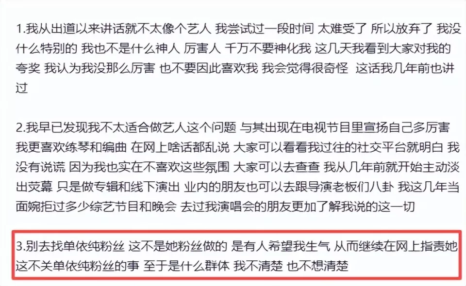 不过,李荣浩在小作文中还专门强调:“别去找单依纯粉丝,这不是她粉丝做的。是有人希望我生气,从而继续在网上指责她,这不关单依纯粉丝的事。至于是什么群体,我不清楚,也不想清楚。”