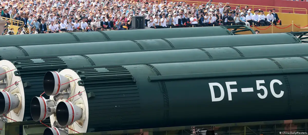 2025年9月的阅兵式上,中国展示了东风5c洲际导弹。图像来源: China Daily/Reuters