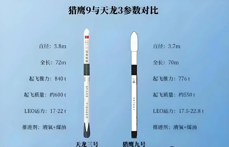 作为中国商业航天首款近地轨道运力超20吨的大型液体火箭,天龙三号全长约72米、直径3.8米,起飞质量约600吨,一级配备9台“天火十二”液氧煤油发动机,起飞推力达855吨,近地轨道运力17-22吨、太阳同步轨道运力10-17吨,规划一子级可重复使用。