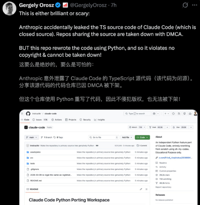 Claude Code源代码泄密后,其在IT界的影响堪称“地震级”。杭州一家互联网大厂IT工程师KK称,“这次泄密的影响是多维度的,不少友商连夜在学习Claude的代码风格(说得直白些就是直接‘抄作业’),另一拨人则尝试在已有的大模型开发模板中加入Claude的模块,优化既有代码。”由于信息敏感,该工程师要求隐去个人信息。