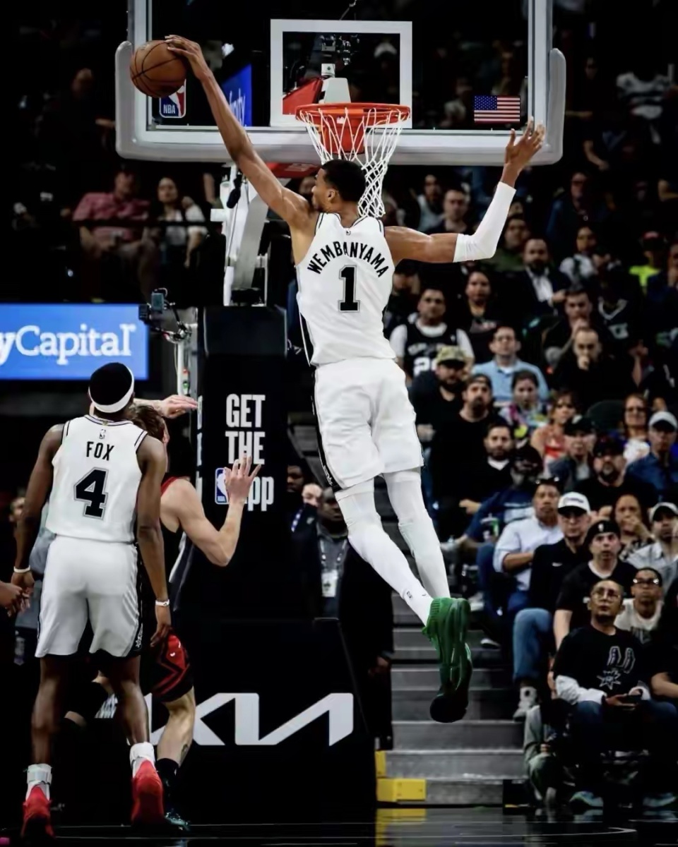 如果说雷霆是卫冕王者,那圣安东尼奥马刺就是本赛季NBA最让人惊喜的超级黑马,从上赛季的乐透区球队,一跃冲到西部前列,直接跻身争冠行列,靠的就是那个改写篮球规则的男人——维克托·文班亚马。