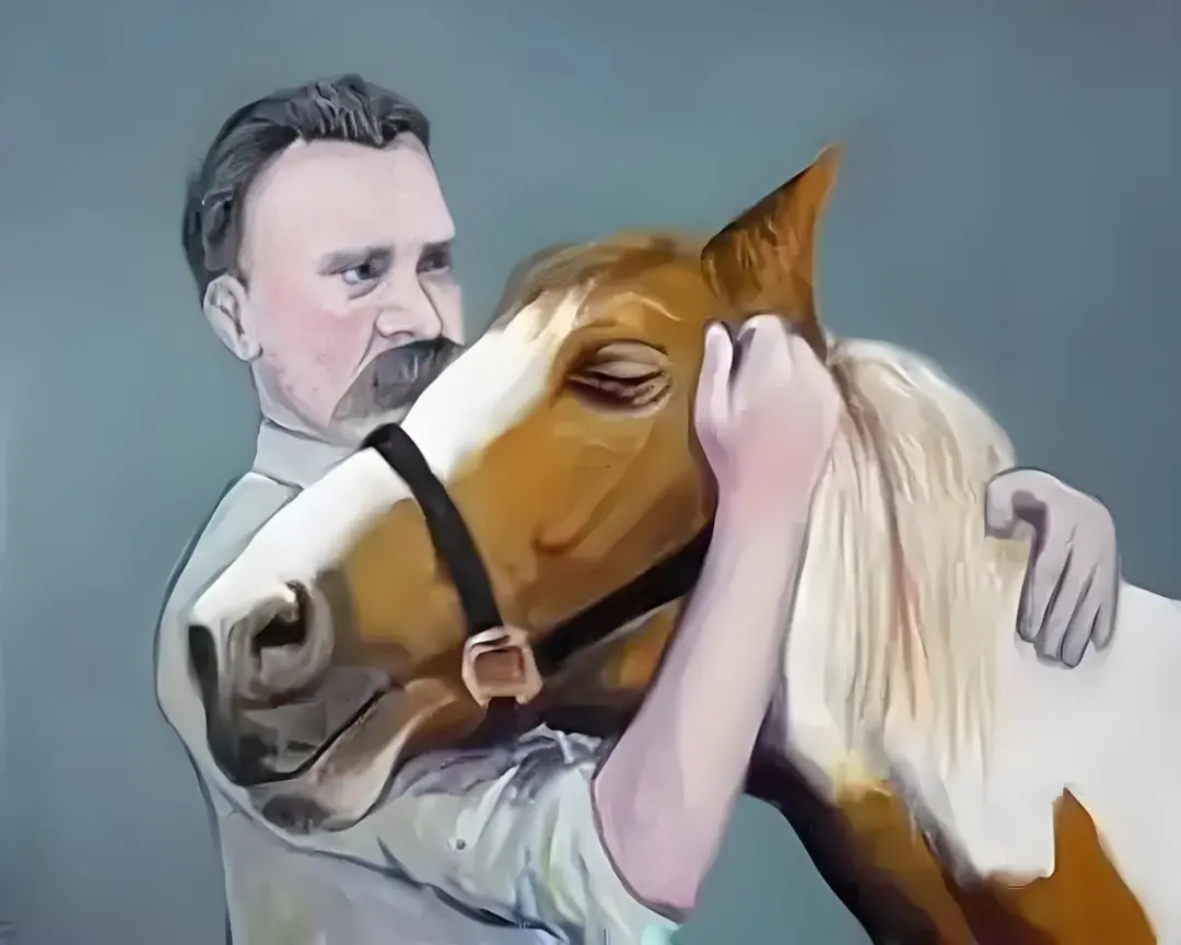 1889年1月3日,尼采在都灵的卡尔洛·阿尔贝托广场,抱着一匹受虐的马的脖子痛哭,随后陷入了持续的精神崩溃。