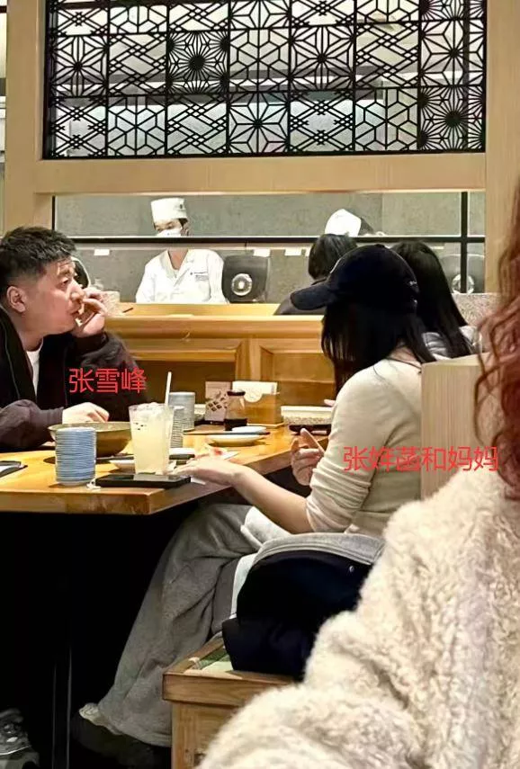 今年2月12日,有网友曾经拍到张雪峰一家三口外出用餐的照片,4月2日,张姩菡也找到了这张珍贵的照片。