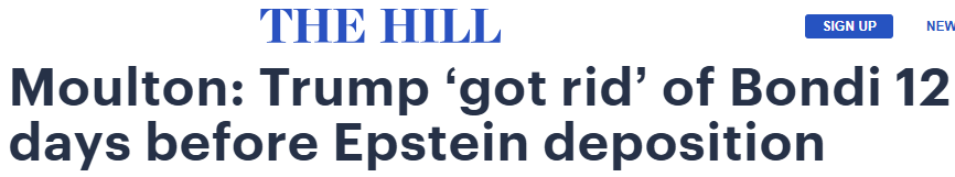 来自麻萨诸塞州的民主党众议员赛斯·莫尔顿(Seth Moulton)周四表示,总统川普解雇司法部长帕姆·邦迪是为了阻止她就涉及爱泼斯坦的众议院调查作证。