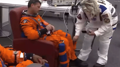 放置环节,宇航员在升空后可以正常使用 iPhone,且 iPhone 与宇航服系统没有任何技术连接。只是为了在发射和返回地球期间能便利存放,宇航员需要将 iPhone 放置在橙色猎户座生存服的储物袋中。