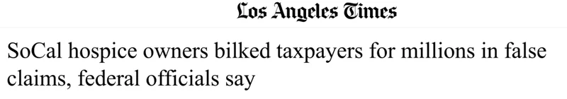 “南加州是临终关怀机构及相关医疗欺诈的高风险地带。”他强调,美国每年因医疗欺诈造成的损失高达数千亿美元,最终由纳税人埋单。