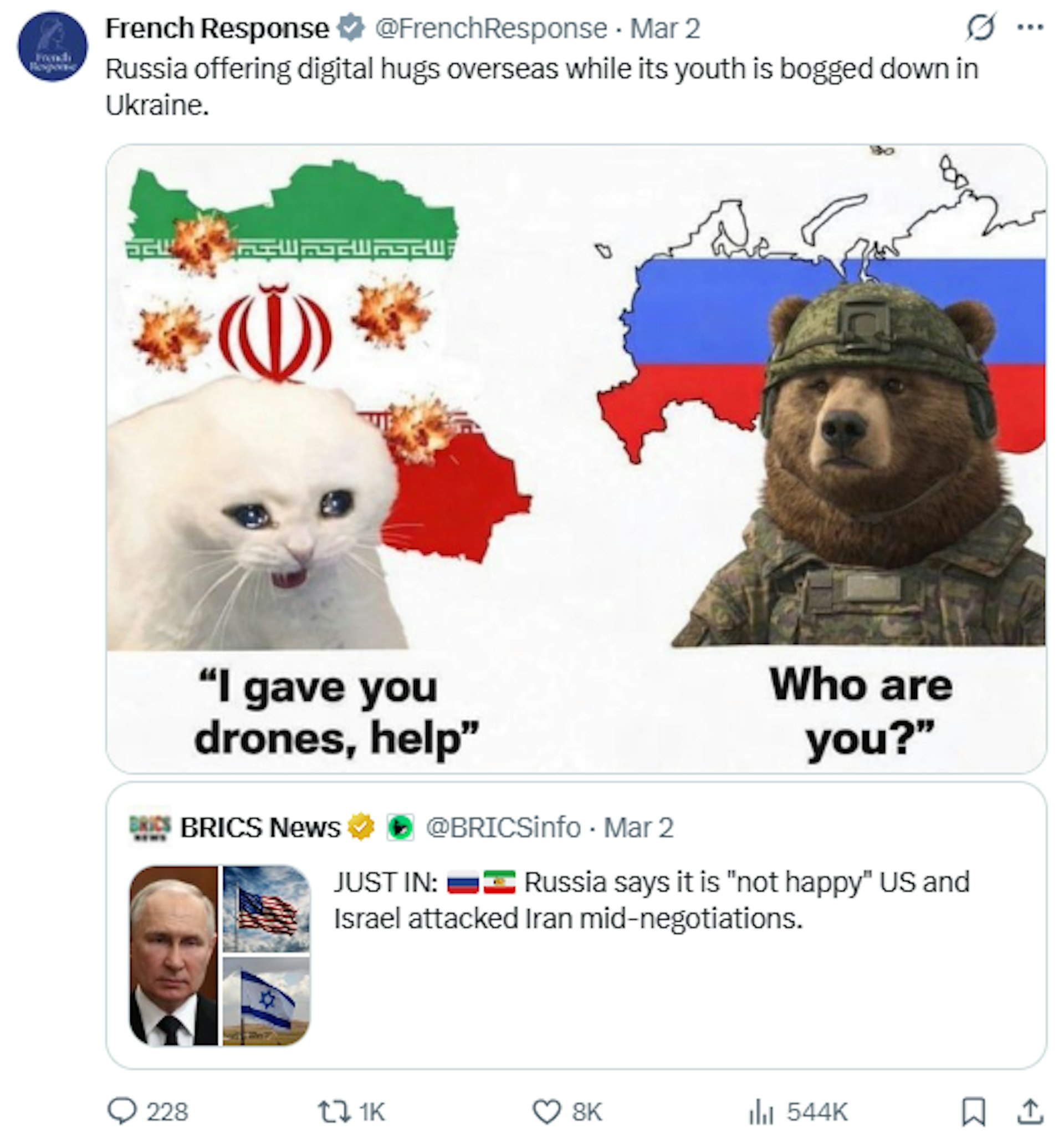 法国外交部在社交网站X(前称Twitter)上的官方账号“法国回应”(French Response)2025年9月创建后,因以幽默、讽刺并结合网络流行语的方式回应网络批评者和虚假资讯而迅速走红,目前已超过20万粉丝。
