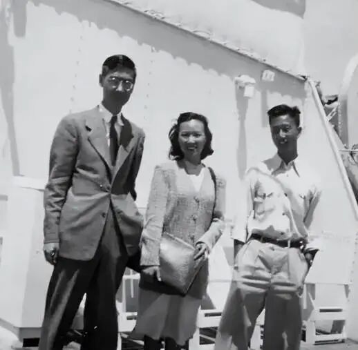 1956年,郭永怀(左一)和夫人李佩(左二)在回国船上