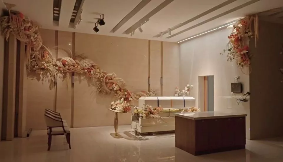 五个月后,她接到老家一个殡仪馆的灯光改造需求。作为灯光设计师,她很快发现殡仪馆的空间存在通病,灯光惨白、冰冷,使用的都是鬼片里的打光手法。这让周丽娴觉得,自己可以做点什么。她开始假扮逝者家属,溜进墓园调研,也会在施工改造时,深夜独自在火化机旁调试灯光。