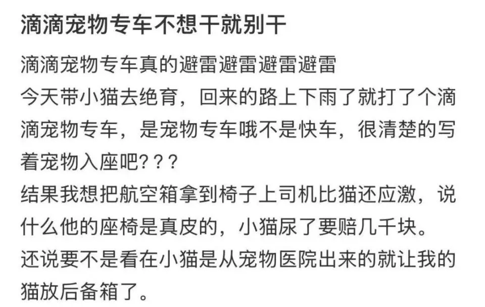 “明明打的宠物专车,司机却充满了嫌弃。”