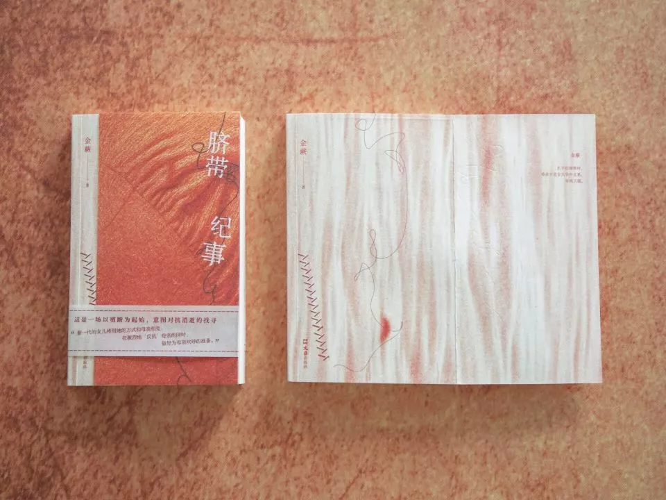 《脐带纪事》是一本毛茸茸的书,每次拿在手上,都让人忍不住抚摸上面的肌理。封面上是一条带褶皱的红裙,摸起来会感受到上面的绒毛,翻开折页,裙子的下方是“皮肤”,你可以摸到那条凸起的“疤痕”。