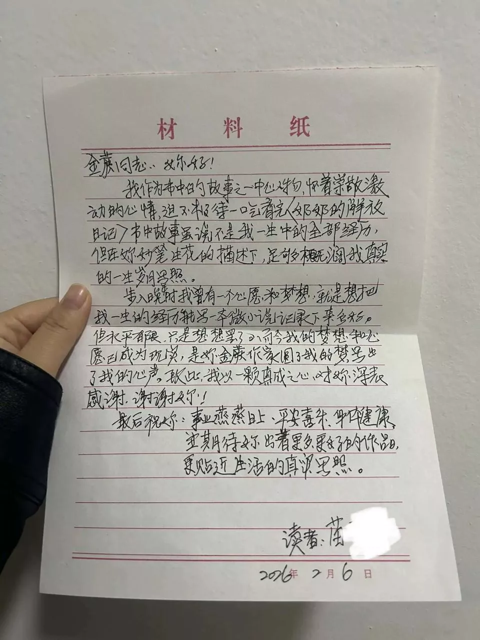 今年春节后,金蕨通过毛毛收到了苗桂芬女士的来信。毛毛说,奶奶已经把这本书看完了,现在正在家人之间传阅,而写信这件事,是在爸爸妈妈的鼓励之下开始的。这意味着,奶奶主动分享了她曾不愿被家人了解的、关于她的另一些切面和感受。