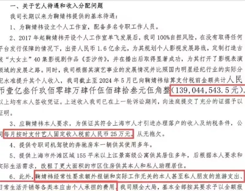 从声明来看,从2017年至2024年6月间,丝芭传媒每月支付给鞠婧祎固定工资25万元,每年合计300万。再加上影视剧、商务演出和合作等,丝芭传媒共向鞠婧祎支付税前酬劳1.39亿余元。