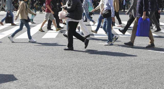 穿越东京涉谷十字路口人行横道的人流人群脚步