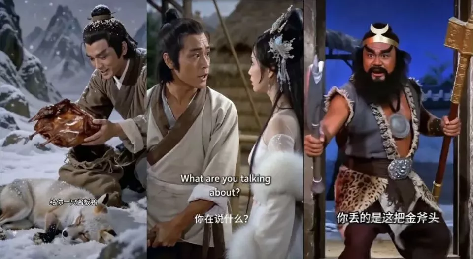 “雪山救狐狸”系列视频的全网刷屏就是例证。如果站在内容层面来拆解这一系列短片的相同点就会发现,邵氏武侠电影的视觉风格、“狐狸报恩”的核心桥段,以及“不是狐狸而是XX”的最后反转,构成了“雪山救狐狸”核心要素。甚至邵氏武侠电影中“一眼假”的粗糙背景,香港电影独特的配音腔,都成为这一系列的标签和符号。