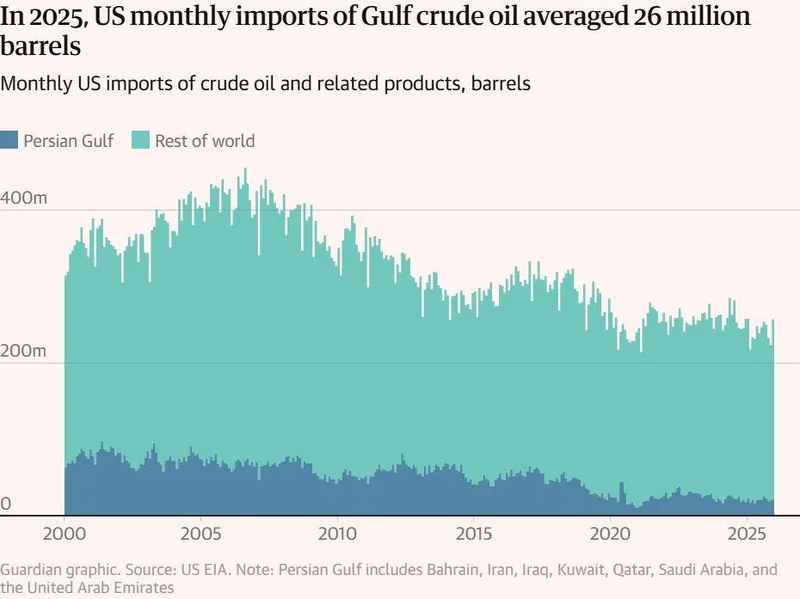2025年,美国每月从海湾地区进口的原油平均量为2600万桶