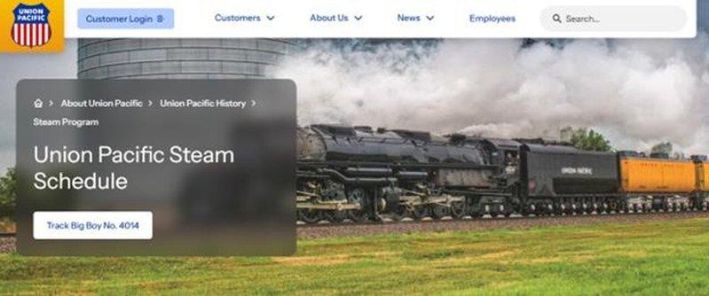 联合太平洋铁路公司的网站上列出此次全国之旅的行程表。(up.com网站截图)