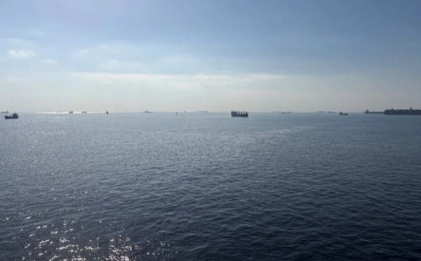 2月28日,伊朗海军通过高频广播发布禁令,禁止所有船舶驶入波斯湾。 从那天起,刘轶文和他所在的船只就被困在阿联柯法干港(Khor Fakkan)待命,这里本是荷莫兹海峡的重要补给点,如今却变成了一个巨大的“滞留等待区”。 附近的锚地已聚集大量船只,涵盖各种类型,“油轮、货船、货柜船,大家都在等。”