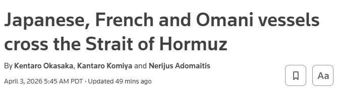 法国船只率先过境 霍尔木兹海峡现局部恢复迹象