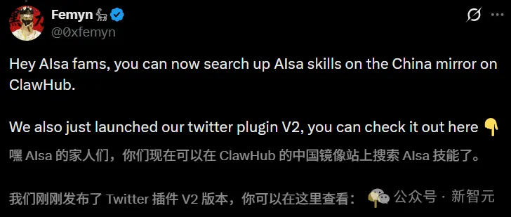 Skill开发者Femyn第一时间跟进,喊话自己的用户,Alsa技能已经能在中国镜像站上搜到了。