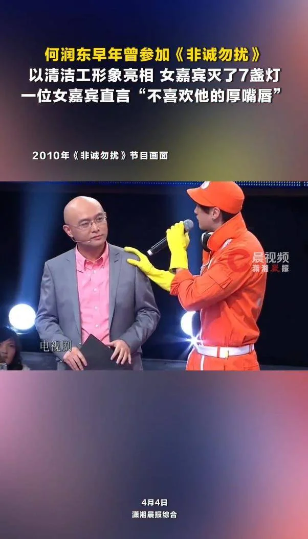 时间倒回2010年,当时已是知名演员的何润东,竟然穿着一身清洁工的衣服,登上了当时火爆全国的相亲节目《非诚勿扰》。他这趟来,一是为了宣传自己主演的电视剧《无懈可击之美女如云》,二来也带着点“假戏真做”征婚的心思。上台前,何润东还自信满满地和主持人孟非打赌:如果台上能为他留灯20盏,孟非就得请他吃饭;要是低于20盏,就他请孟非。