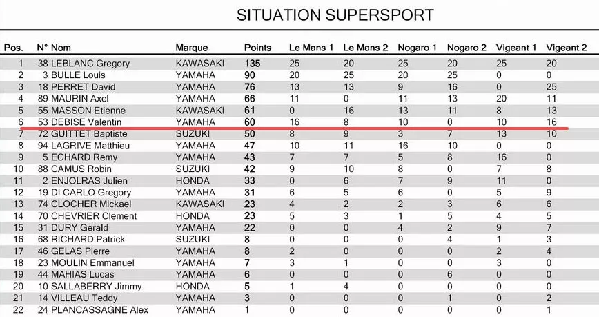 观察者网查询发现,2012年德比斯在法国参加了三站比赛,当时排名第6。他未参加后面的5场,包括家乡阿尔比的收官战Mototribu