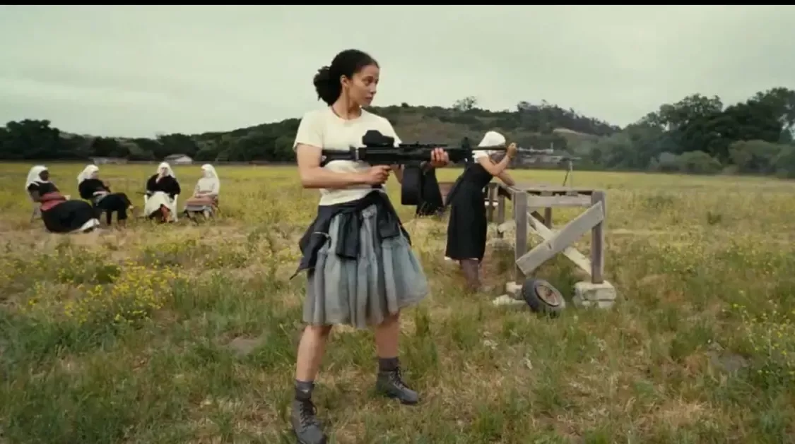 影片跳出了传统的英雄史诗框架,将视线聚焦于革命失败之后的满目疮痍。在影片的开篇,被视为借鉴美国“地下气象组织”(WUO)的地下反叛组织“法兰西75”(French75)横空出世,这群反主流文化激进分子烧杀抢掠、纵欲行乐,嬉皮士风味十足。黑人抵抗领袖帕菲迪亚身着卡其裤与靴子,敞开格子衬衫,头戴羊毛帽,挺着孕肚持机枪扫射。这一形象几乎是对黑豹党(BPP)与共生解放军(SLA)时代视觉政治的梦魇式复写——激进、炽烈,却注定短命。法兰西75以推翻体制的豪迈气概发起起义:爆炸、抢银行、闯入移民拘留中心解救囚犯。这份气势正是对那个时代的深切致敬。然而,帕菲迪亚最终在体制强权的诱惑与恐惧中屈服,犹如上世纪六七十年代进步阵营在国家机器与消费主义的双重夹击下分崩离析。她与白人军官洛克乔诞下的女儿薇拉,存活于集体主义退潮的历史阴影中,薇拉的身份本身便交织着意识形态的悖论。而曾经的革命伴侣鲍勃,则在漫长的岁月中蜕变为一个被时间掏空的躯壳,只能靠着一台旧录音笔,试图维持那种名为“G1频段”的微弱共振。