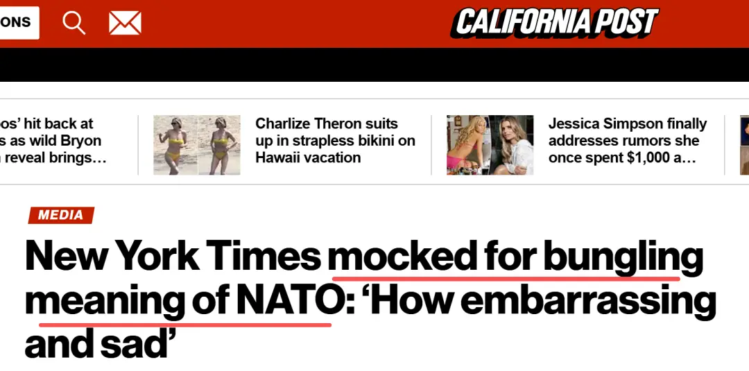 《纽约时报》搞错北约(NATO)含义遭嘲讽:“多么尴尬,多么可悲”