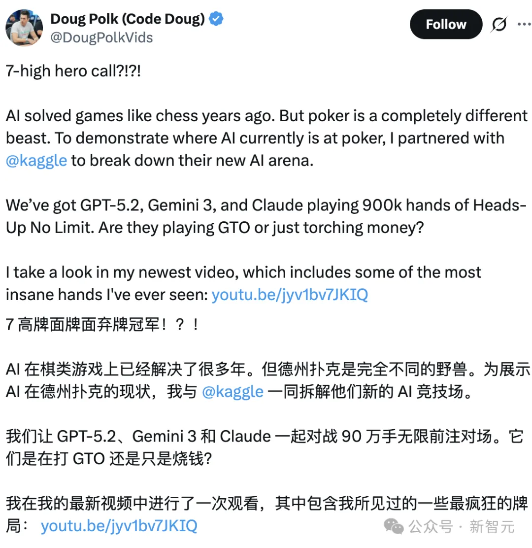 当DeepSeek缓缓亮出那张毫无意义的草花7时,整个直播间弹幕刷屏:「这特么是碳基生物教出来的吧?!」