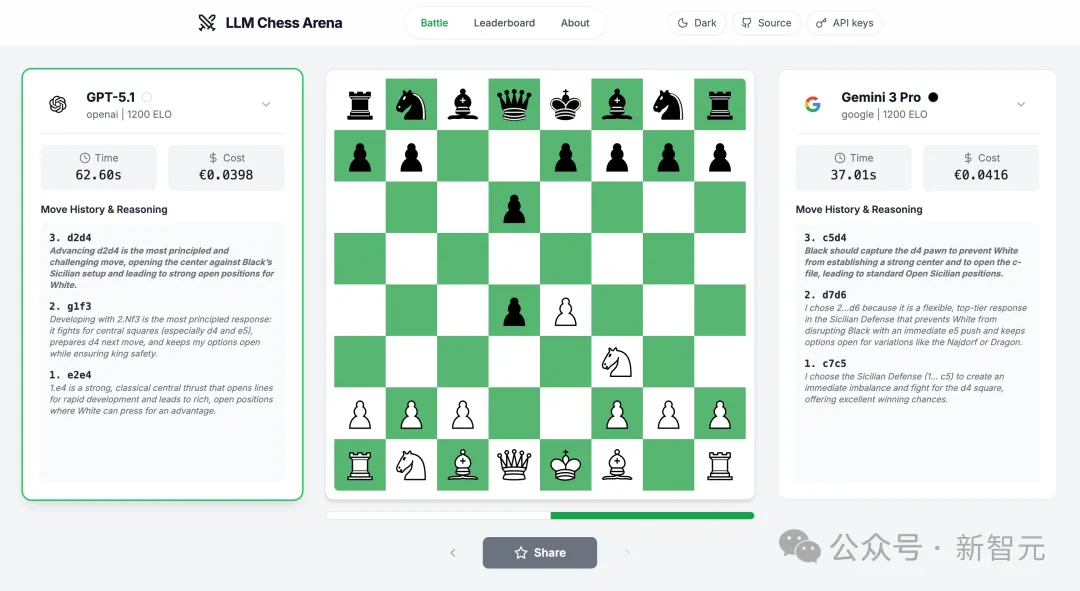 Gemini 3 Pro vs GPT-5.2 Chess对局(Elo1200+)