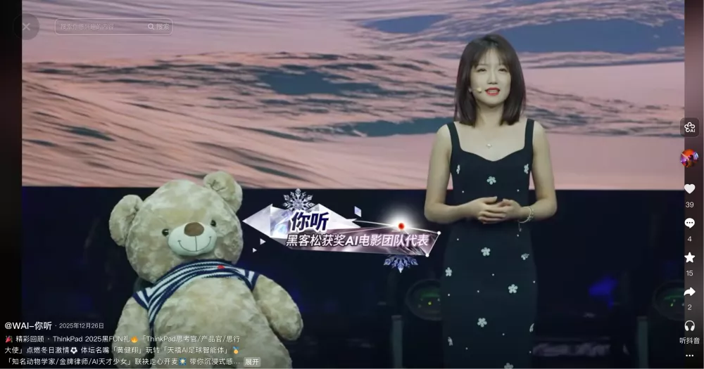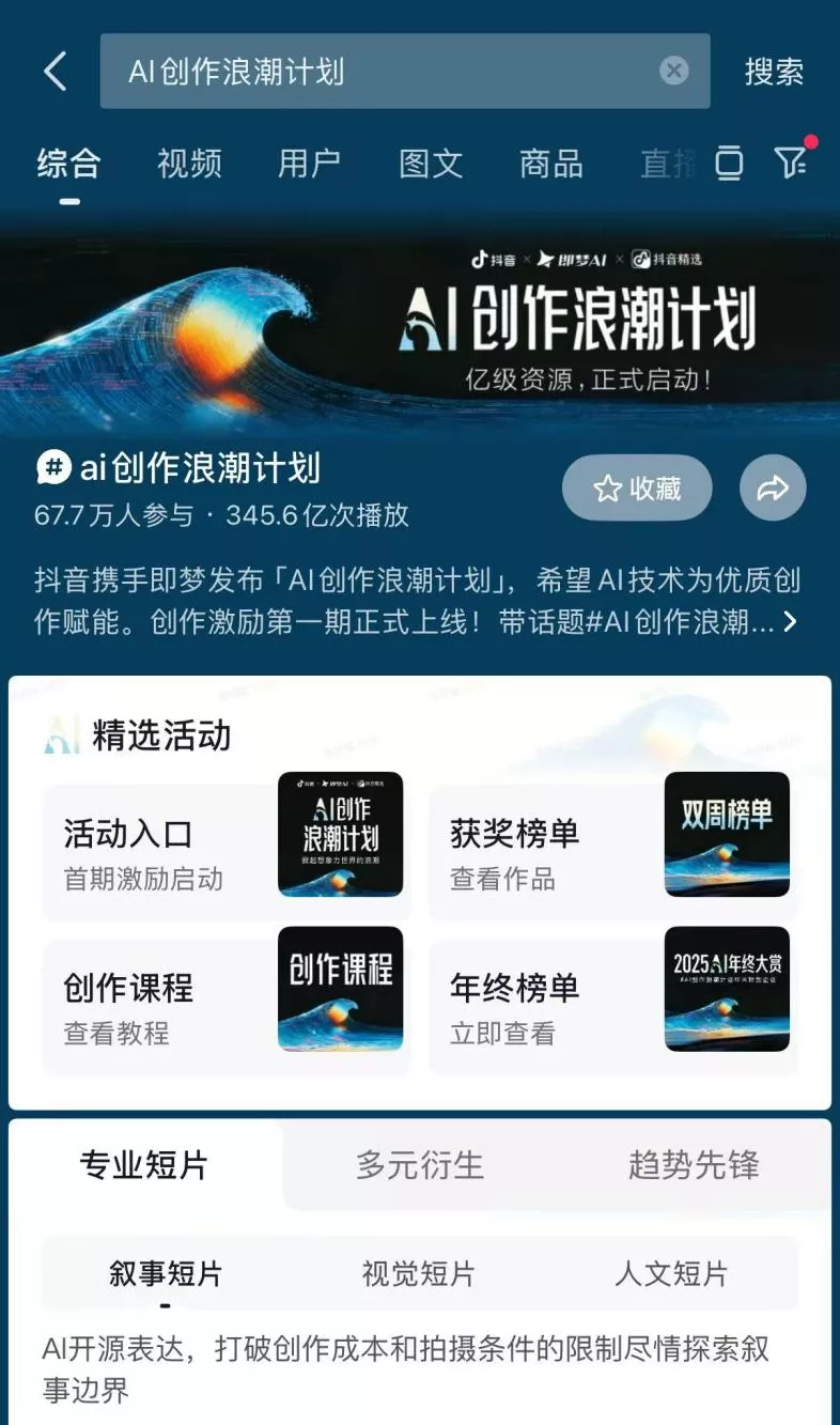 去年,抖音正式发布「AI创作浪潮计划」,为优质AI内容提供系统化扶持,进一步拓宽创作的可能性。李婷表示,抖音更关注的是内容本身,而不是创作者的粉丝体量,还会主动联系创作者加入社群、参与后续扶持计划。