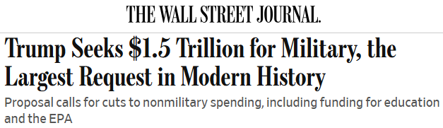 民主党籍参议员帕蒂·默里(Patty Murray)则表示,军事资金的增加以牺牲医学研究为代价。“我们的国防预算不应该由一位将军人派往危险的海外战争的总统来决定。”她说。