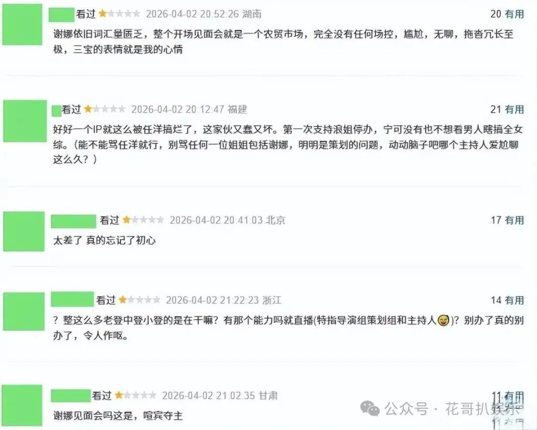 谢娜在《浪姐7》又被吐槽花哥扒娱乐