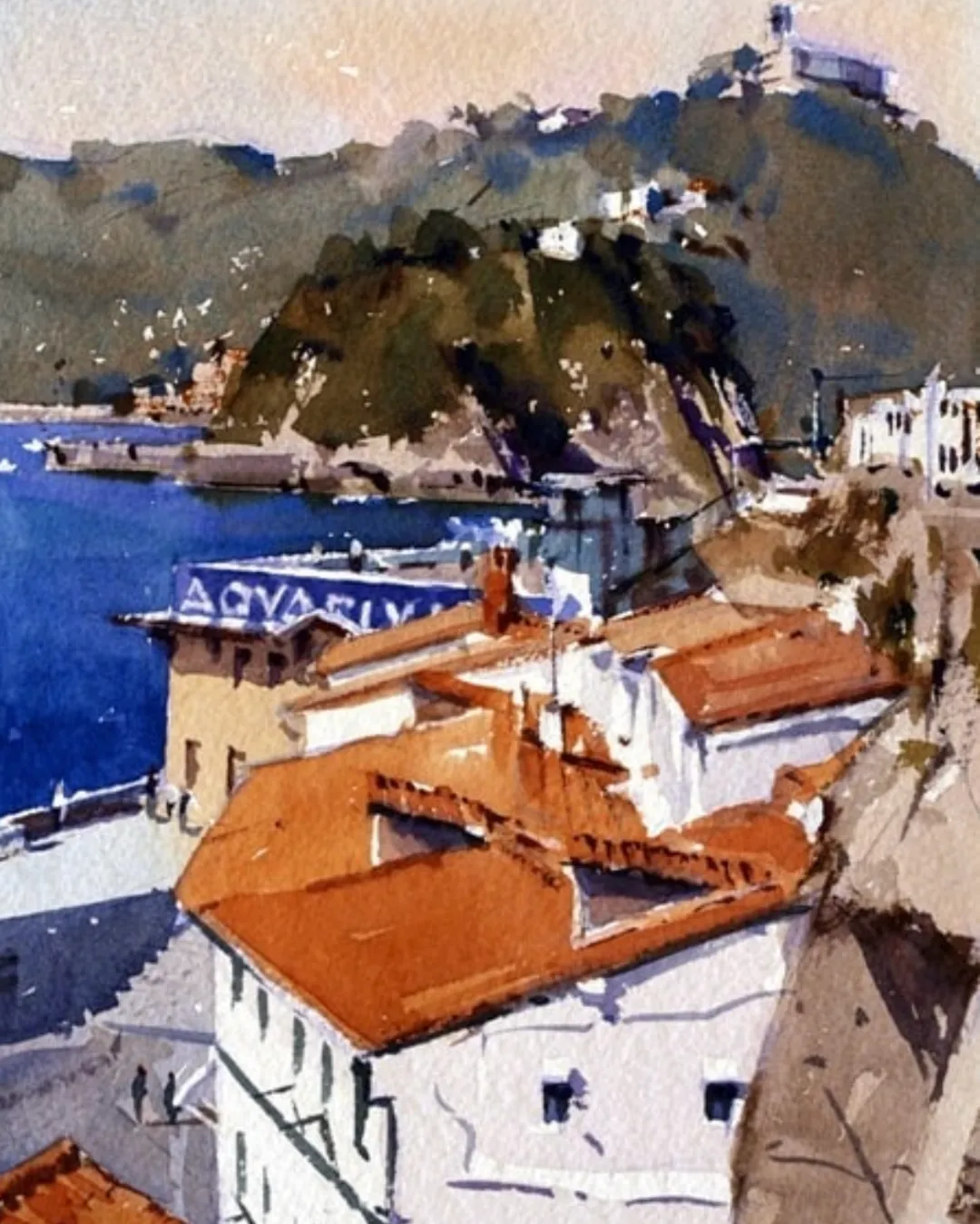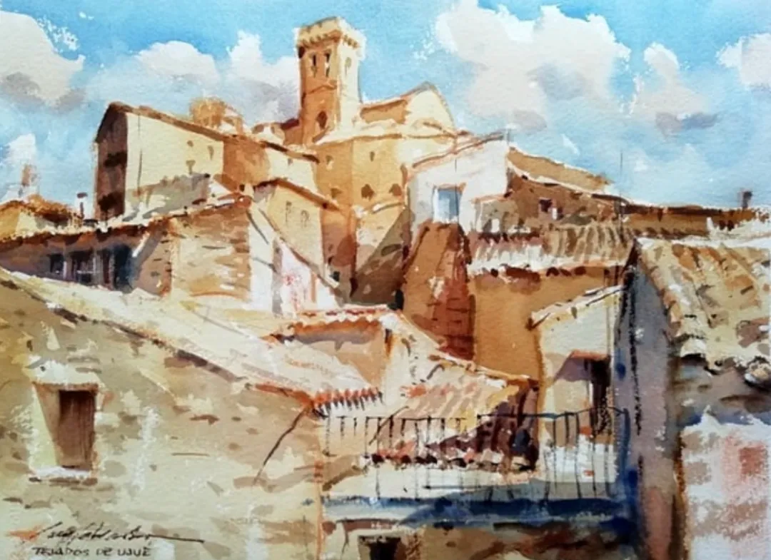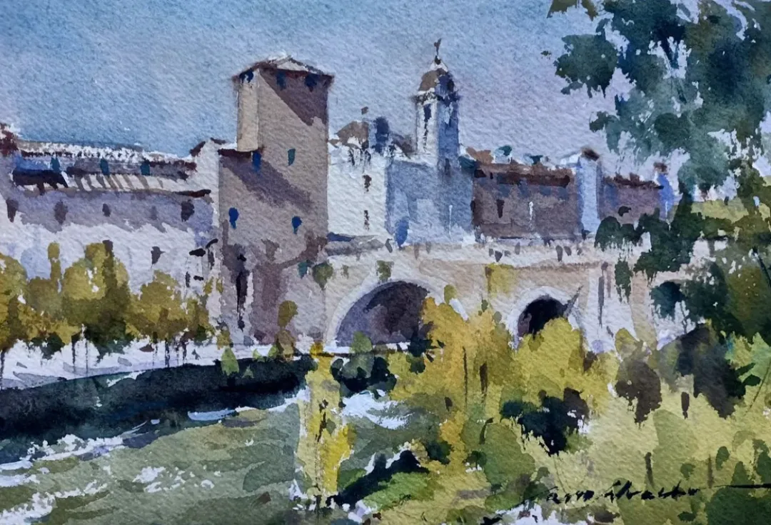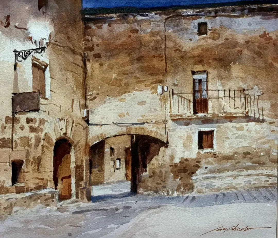 阿曼多·胡兹·圣萨尔瓦多(西班牙)水彩画