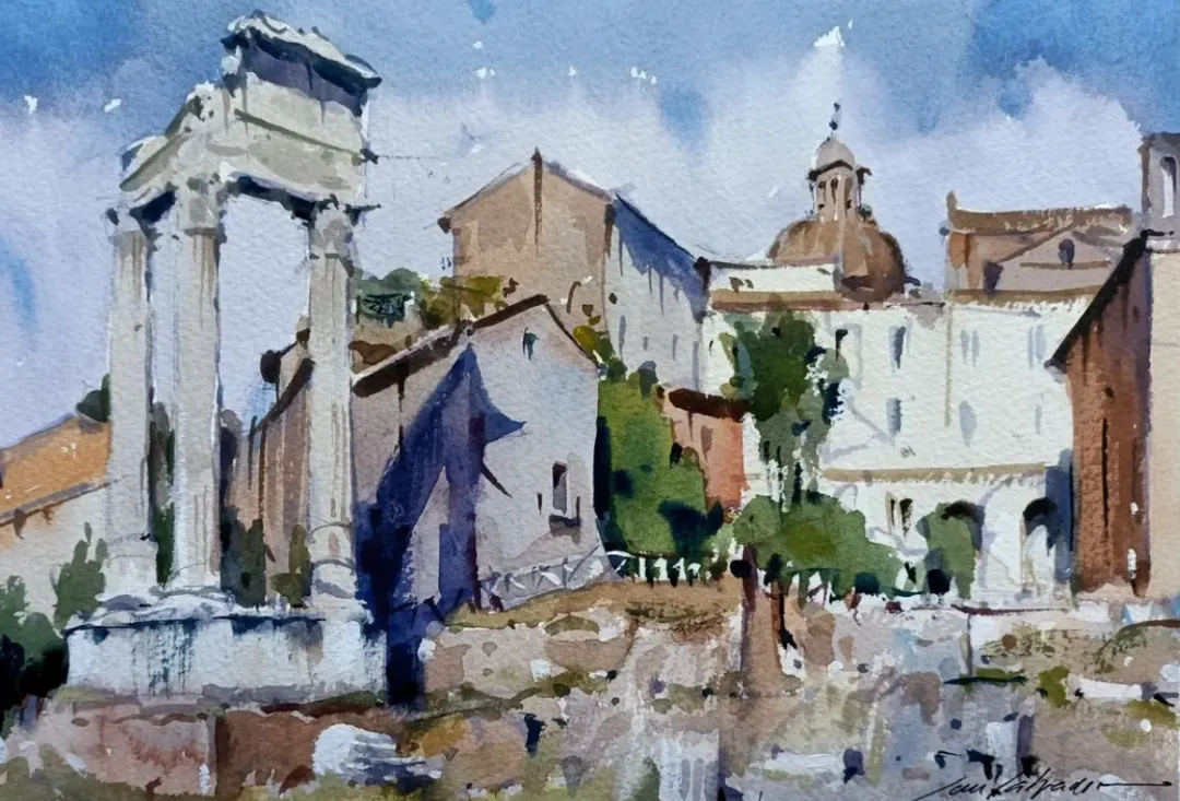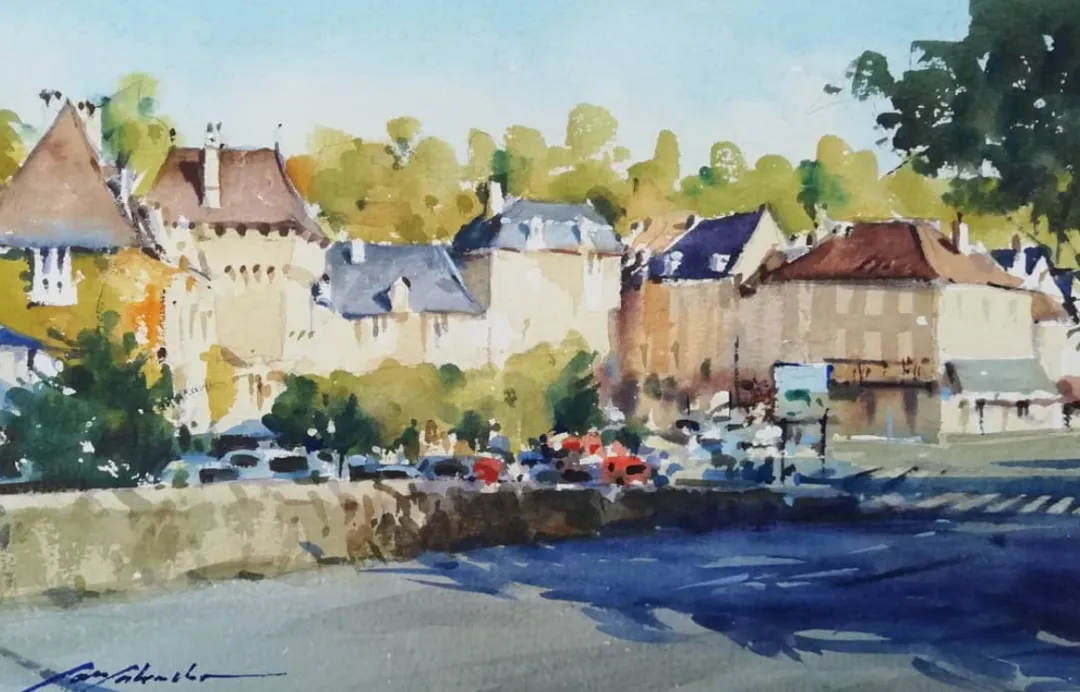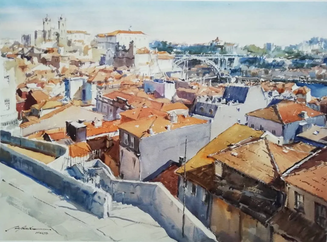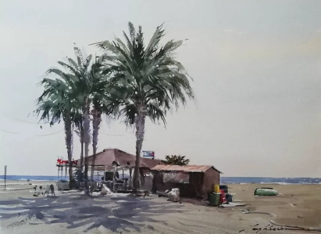 阿曼多·胡兹·圣萨尔瓦多(西班牙)水彩画
