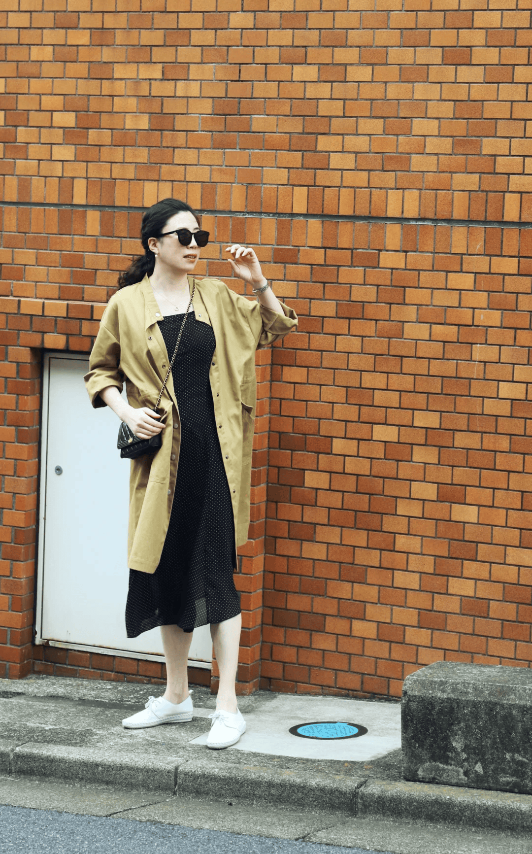 想要造型更加随性舒适,这种长款衬衫也可以当做风衣来穿,轻薄的面料,黑色波点网纱裙,用白色平底鞋加持造型,整体穿搭温柔又耐看,是春季出行最亮眼的存在,这种穿搭最适合搭配链条包,提升精致感,而且衣服的面料尽量选择轻薄的面料,飘逸感好更显气质。