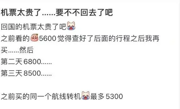 机票一涨再涨,有的几周内直接翻了几倍,有的甚至一夜之间就涨到让人不敢下手。