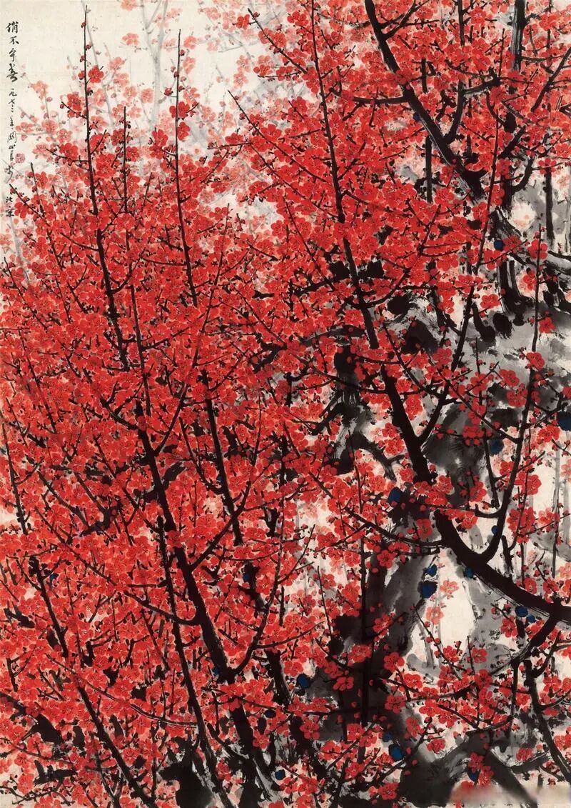 别人画梅,要么清瘦孤傲,要么淡墨点点,走的是高冷文人范儿。唯独关山月,一出手就炸场。