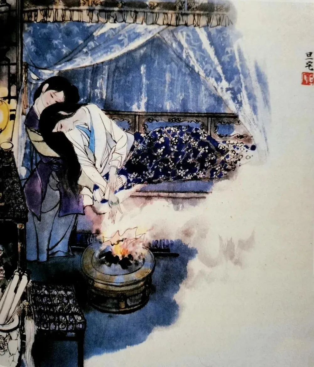刘旦宅《黛玉焚稿》:烧的是纸,断的是心