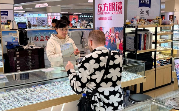 中国扩大“144小时过境免签”等入境政策后,又多了一个外国游客爱去的新打卡点──上海国际眼镜城。 在这里仅花一小时就能以比他们本国更便宜的价格和效率配好眼镜,吸引不少老外“打飞的”来上海配镜,有外国家庭一次就买了20多副。
